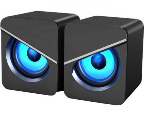 2.0 electronic desktop speakersDynamic blue lights3.5MM stereo audio input.Long wire control, practical and easy to operate. RMS: 3W x 2Drive Unit: 2.5 inch