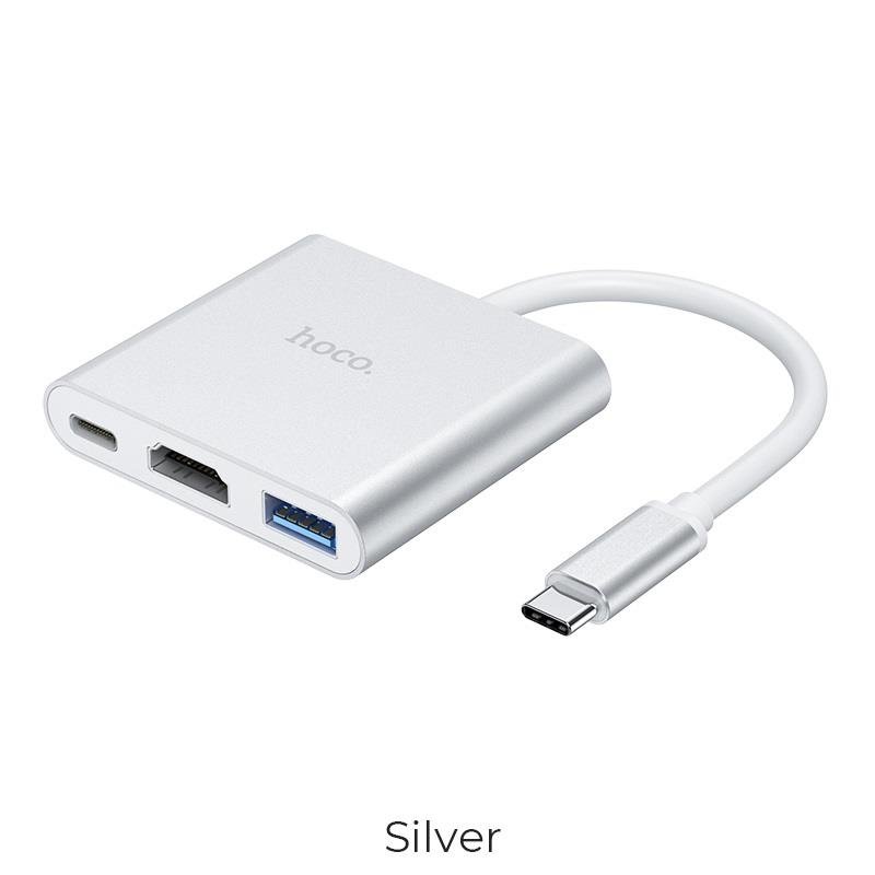 HOCO HB27 TYPE-C HUB , HDMI + USB3.0 + USB2.0*2 + PD , METAL GRAY